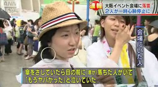 当時、大阪市内には大雨洪水警報と雷注意報が出ていた。