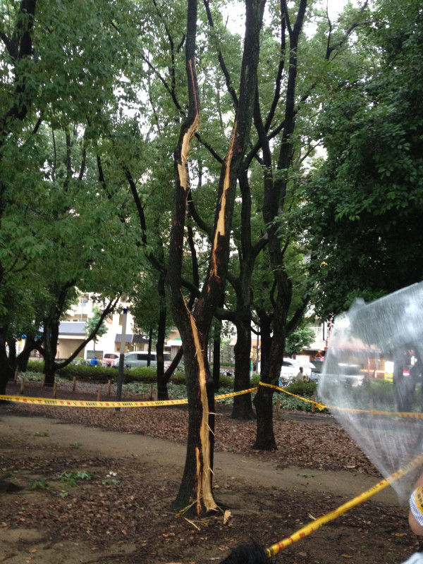 18日午後2時20分ごろ、大阪市東住吉区の長居公園の樹木に落雷があり、近くで