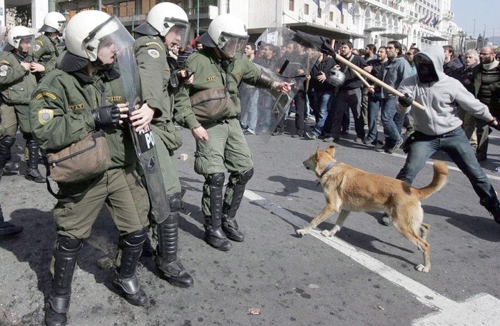 Bloodied but defiant: 10,000 Greek strikers and police in running