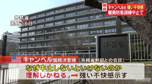 アメリカのキャンベル国務次官補が外務省幹部に、「理解しかねる」と