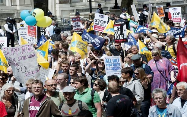 | 【11月30日 AFP】 英キャメロン政権が発表した年金制度改革案に抗議して、公務員200万人が30日、英全土で ストライキに突入した。過去数十年で最大規模のストライキで、影響は広範囲に及ぶとみられる。 同日、英全土の学校の4分の3は休校となり、病院は救急治療のみを受け付け、 自治体機能はまひしている。 空港や港湾でも大きな影響が出そうだ。世界で最も多い利用客を誇るロンドン(London)の ヒースロー空港(Heathrow Airport)では、出入国管理局の職員もストライキに加わっているため、 到着した利用客たちは旅券審査に最大3時間程度の遅れが出る可能性があると伝えられた。 公務員の年金保険料と退職年齢を引き上げる案を示して公務員組合を怒らせた デービッド・キャメロン(David Cameron)首相率いる保守党と自由民主党の連立政権にとって、 今回のストライキは最大の試練となるだろう。 英労働組合会議(Trades Union Congress、TUC)のブレンダン・バーバー(Brendan Barber)書記長は、 公共部門は政府からの「攻撃にさらされて」おり、ストライキは完全に正当化されると主張している。 同氏は英テレビ局ITVに、「みんなが本当に立ち上がって抵抗しなければならない時が来たのだ」 と語った。(c)AFP/Guy Jackson |