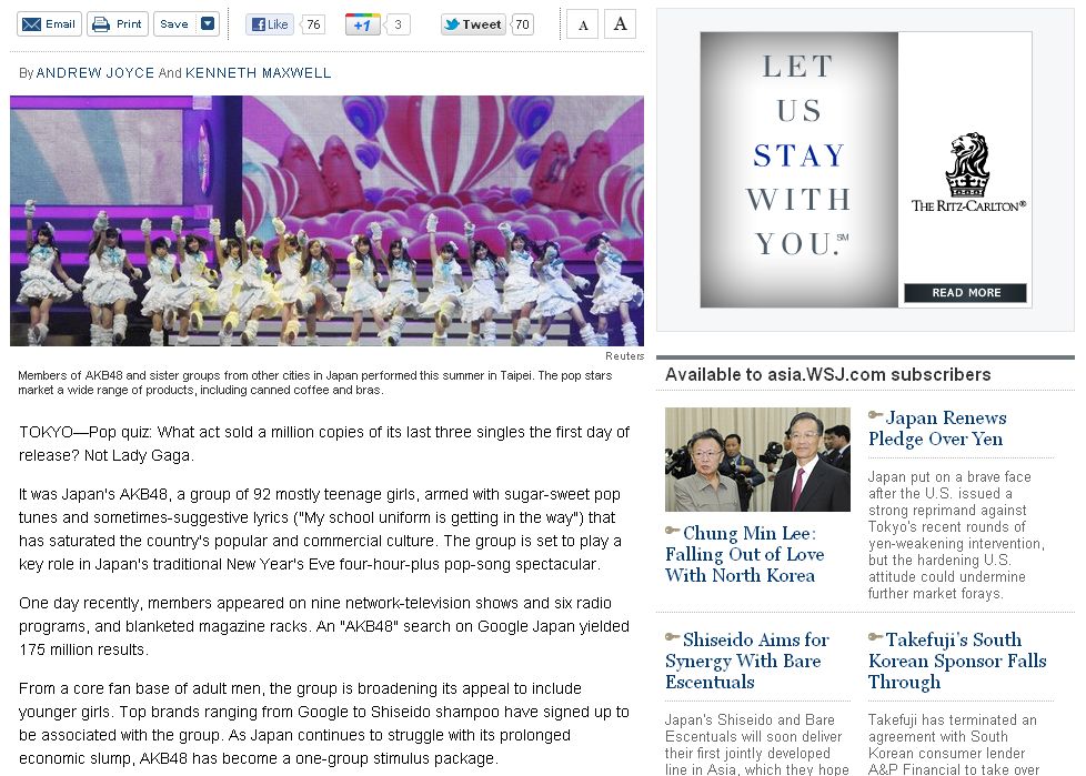 ウォール・ストリート・ジャーナル、アジア版19面に慰安婦関連広告を掲載した。