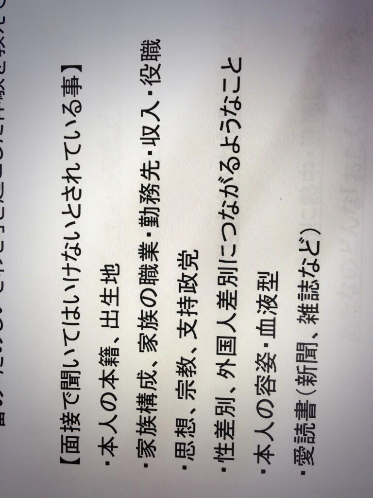 【面接で聞いてはいけないとされている事】