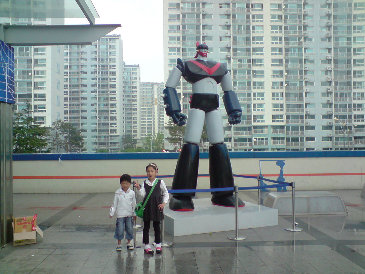 歌手のキム・ジャンフンとともにロボットテコンVが