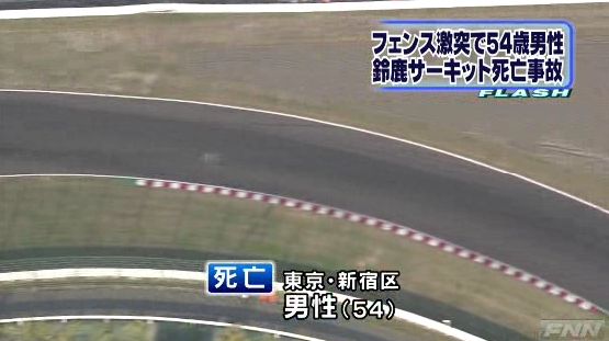 コース脇のフェンスに激突し死亡。