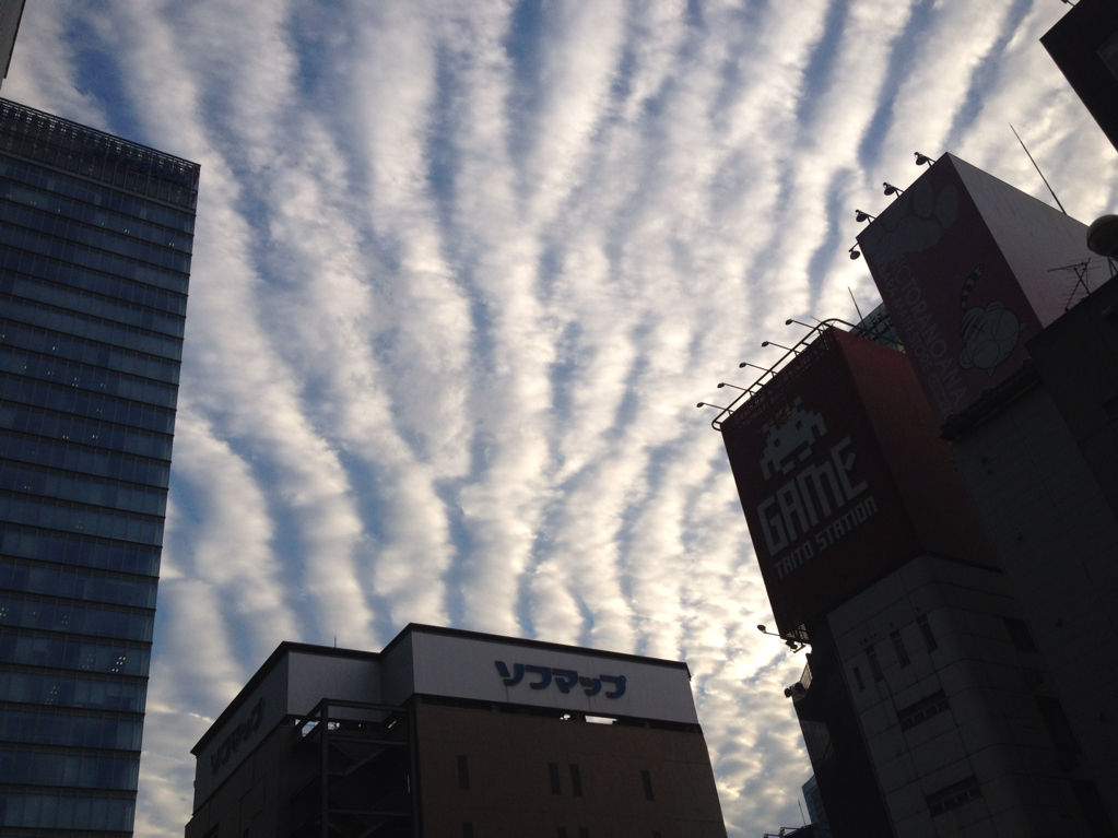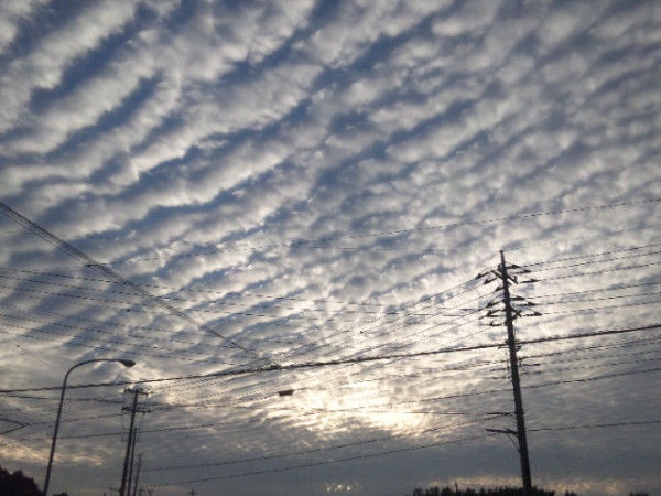 大震災前によく出ていた地震雲が空一面を覆っている。